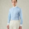 Elevate your wardrobe with the Swain Light Blue Spread Herringbone Shirt, impeccably woven and made in Italy for a sophisticated tailored fit. Featuring an Eton spread collar and smoked mother of pearl buttons, it blends classic elegance with modern finesse.