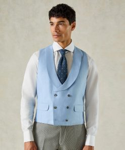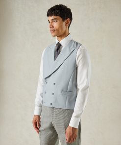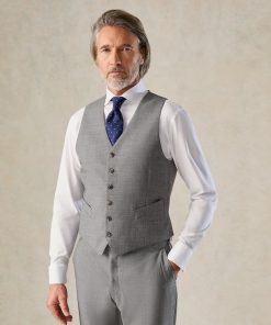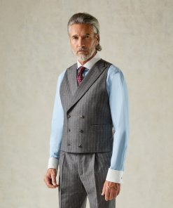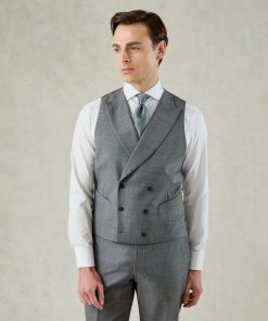 Gieves and Hawkes Men’s Torlese Double Breasted Virgin Wool Sharkskin Morning Waistcoat Grey