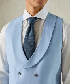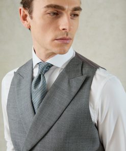 Gieves and Hawkes Men’s Torlese Double Breasted Virgin Wool Sharkskin Morning Waistcoat Grey