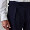 For those seeking a timeless and versatile addition to their formal wardrobe, the Cartwright Suit Trouser in Navy Flannel stands unparalleled. Rooted in tradition yet embodying contemporary sensibilities, this garment is perfect for any occasion that demands impeccable style. Made from the finest materials sourced from the prestigious Guabello mill, these trousers are a testament to Gieves and Hawkes’ commitment to luxury and quality craftsmanship.