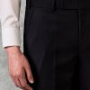 The Clarke Suit Trouser in Black Twill is cut from 100% UK-made wool for a refined, tailored finish. Designed with a flat front, belt loops, welt pockets with horn buttons, and a hook-and-button closure, it’s half-lined and left with an unfinished hem for a perfect custom fit.