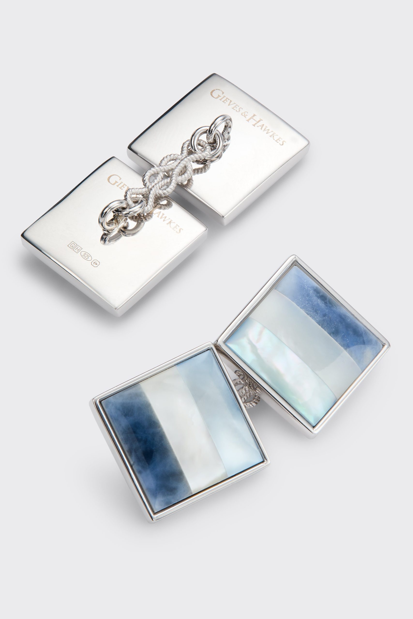 Gieves and Hawkes Men’s Clint Sterling Silver Square Cufflinks Blue Mother Of Pearl