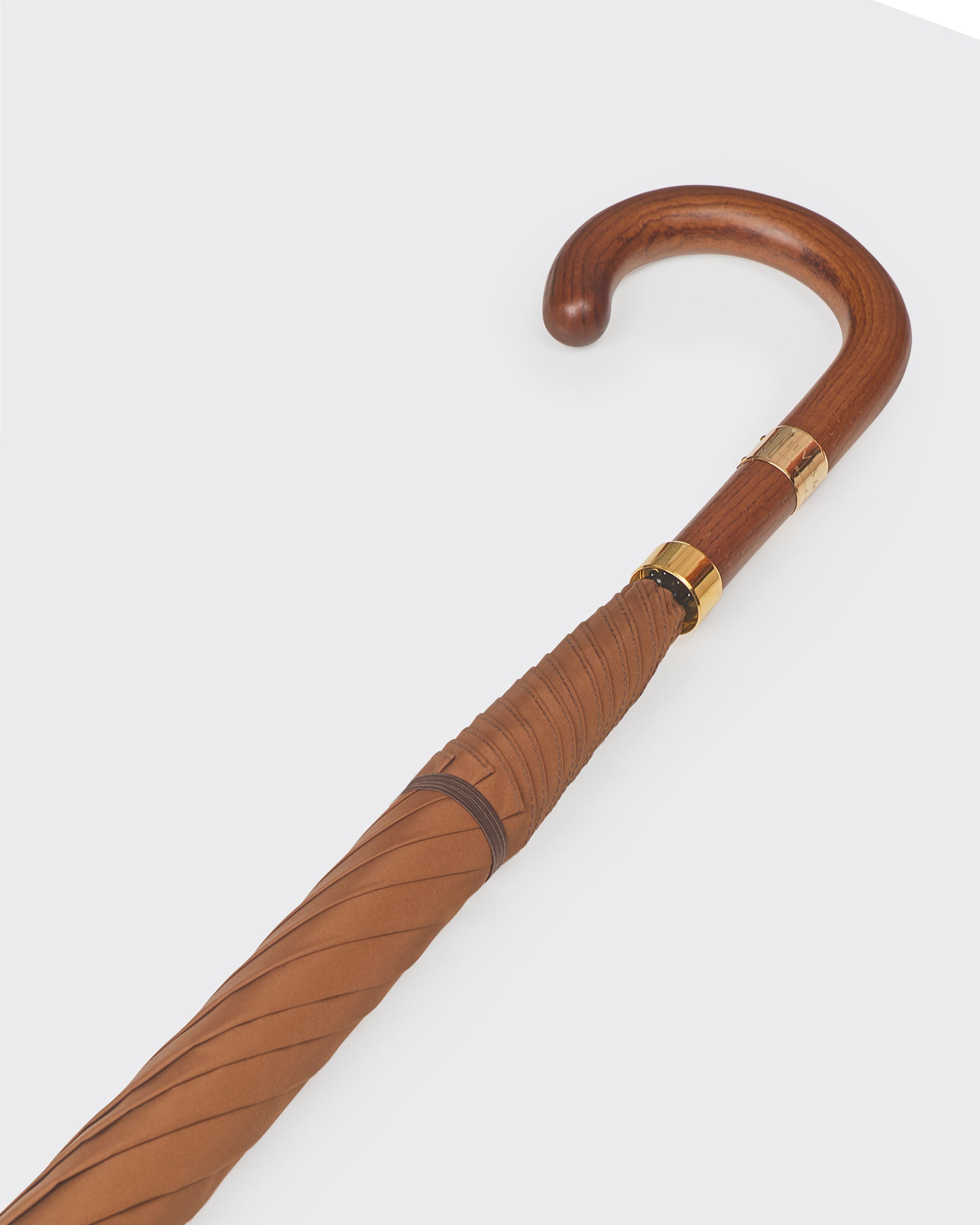 Gieves and Hawkes Men’s Fielding Umbrella With Wooden Handle Mid Brown