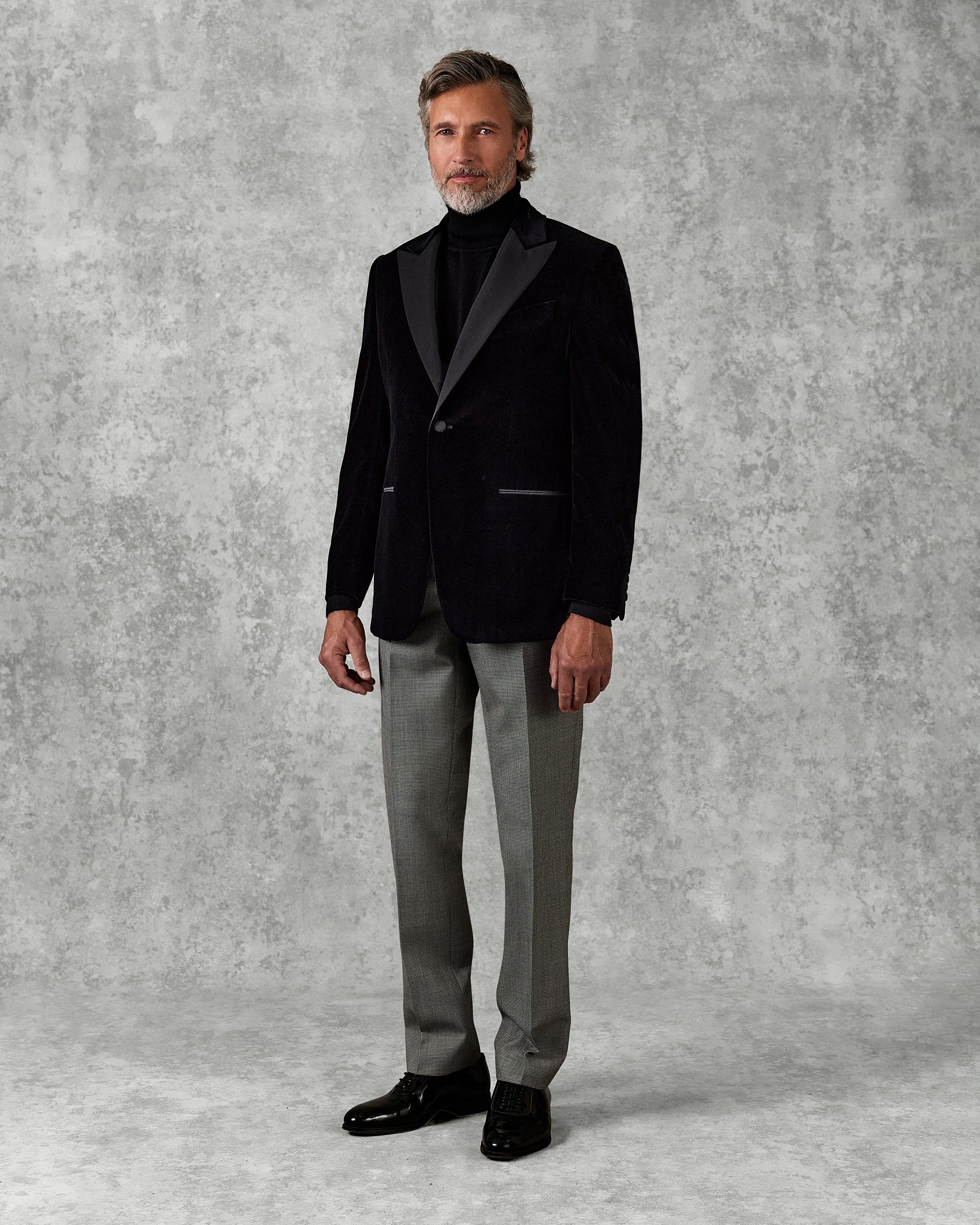 These half-lined trousers offer an unfinished hem, allowing for personalized tailoring to achieve the ideal length. Sourced from the Lochcarron Mill the renowned Scottish fabric mill, offers these trousers with an exceptional morning-style puppytooth pattern that is both contemporary and classic. perfect for formal events or refined morning wear. Part of our perennial Core range.