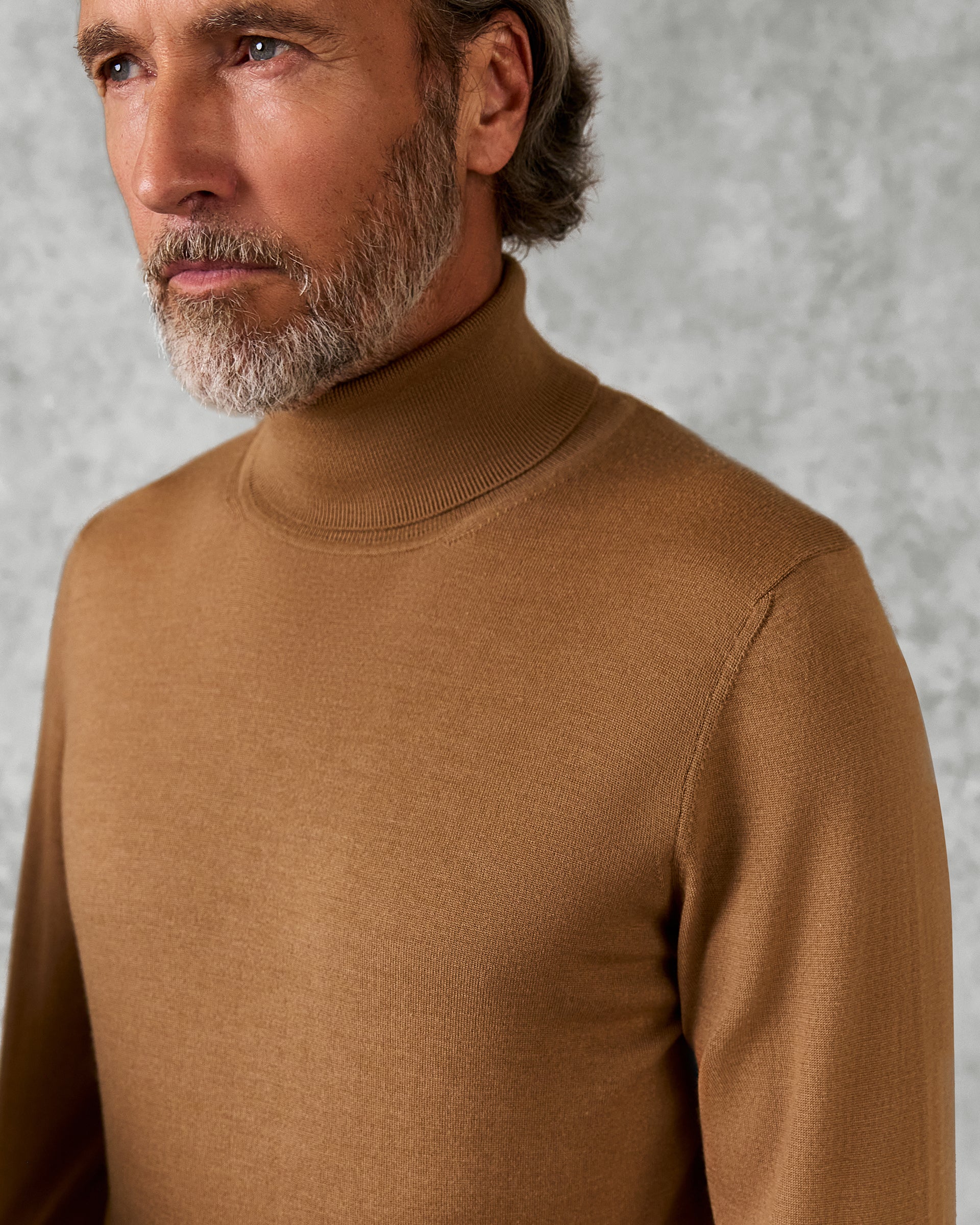 Gieves and Hawkes Men’s Osborne Merino Wool Roll Neck Knit Tan