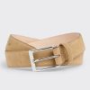 The Theed Belt in Tan Suede by Gieves and Hawkes epitomizes refined luxury, perfect for those seeking a touch of sophistication in their formal attire. Crafted with meticulous attention to detail, this belt features a premium tan suede finish, complemented by a sleek silver rectangle buckle. Tailored with precision to fit your waist, it stands out with its elegant design and superior quality.